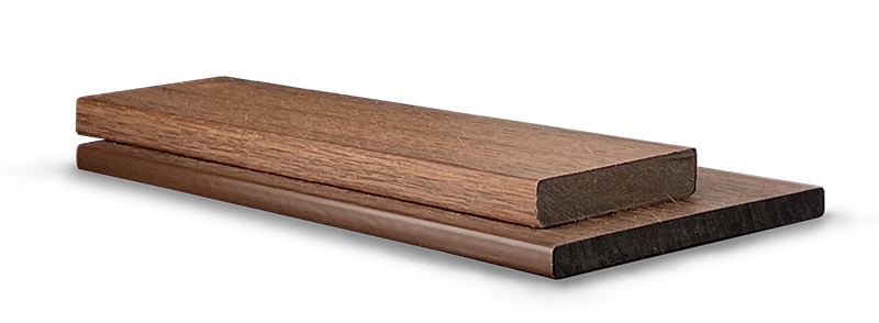 La TECNOLOGÍA ULTRASHIELD® integra un núcleo de fibras de madera y polietileno de alta densidad con una cubierta de polímero que sella cada tabla. Su envoltura reproduce tonos y vetas de la madera, preservando